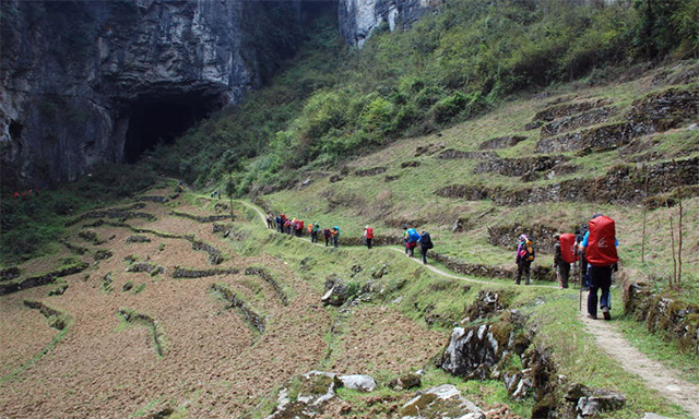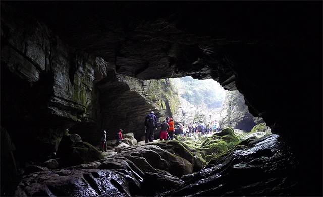 自然景区则主要由一线天、熊猫洞、大小龙门、独家寨、洞群、暗河、地缝、独峰、象鼻山、清江河画廊等组成,在这其中,洞中有洞、洞洞相连、洞中有山、山中有洞、伏流密布、石缝众多,钟乳石林立。古河床地质结构比较全面,是典型的喀斯特地貌。它结构复杂多样沿途风光秀丽,在它的遗址上溶洞 陡崖 坍蹋的巨石比比皆是。这条线路是中国内地比较经典的户外徒步线路。